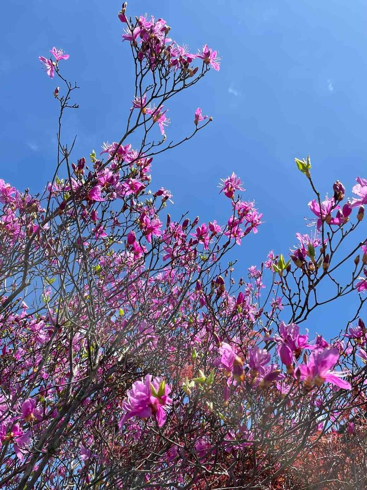 晴れ上がっていたお昼過ぎご近所を通りかかったら、お庭の大きく育ったツツジが青空に向かって咲きとても綺麗でした。💖💕
