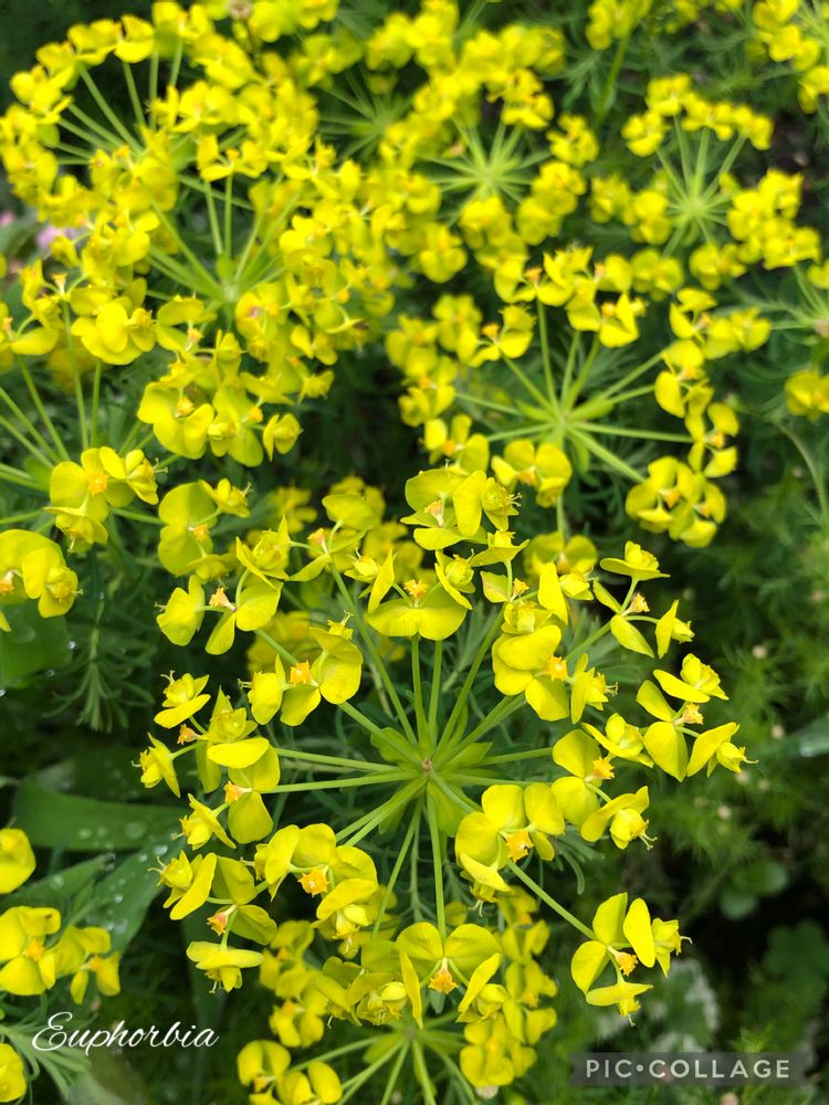 まぁるく集まっていたのが 円型に開いて咲いている、3年目のユーフォルビア. キパリッシアス 💛増えました〜