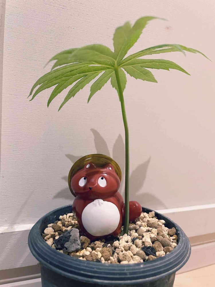 もう開ききって元気な傘になっていたけどたぬきと一緒にしたらかわいい