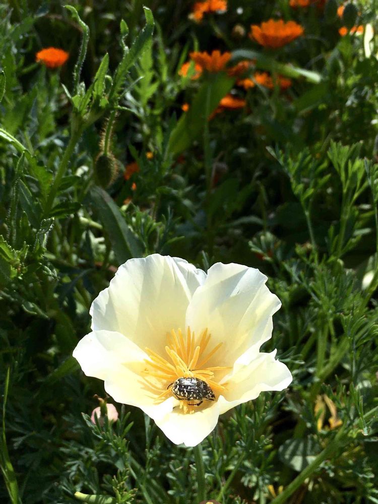 コガネムシ付きのハナビシソウなのネ (*´ 艸`)