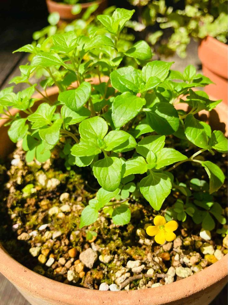 今年もカラミンサネペタの鉢にカタバミの花が咲きました🌼。