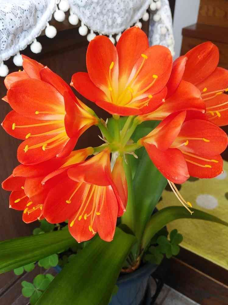 遂に咲いてくれました(*^^*)君子蘭💐👌(〃'▽'〃)✌人生の先輩が引っ越す時に連れて行けないからとヾ(・ω・`)…うちにお迎えしてはや7年(T^T)💦初めて花芽付けてくれました💐ヾ(≧∇≦)💗キレイ~(*^▽^*)うれぴいです💓かわい~です💖長いことかかったけど、やっとウチの子になってくれたね(っ´ω(*´ω`pq゛