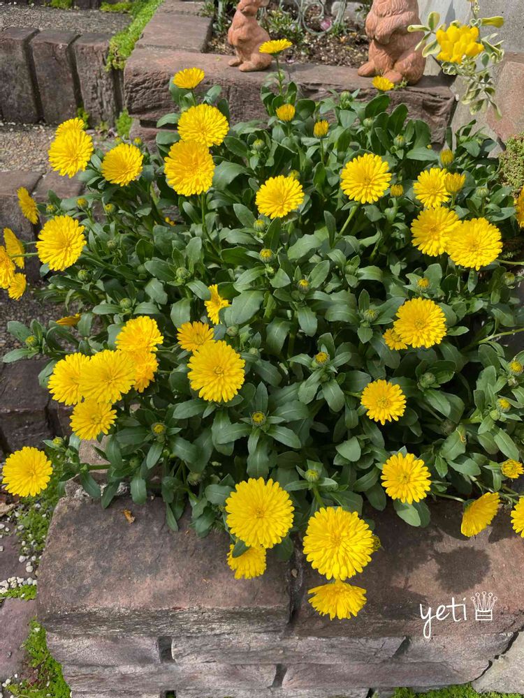 PWのカレンデュラ パワーデイジーがモリモリ育ってお花をいっぱいつけています♪