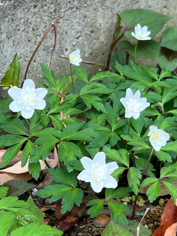 コンクリート塀にへばりつく様に可愛くさいてます。💓