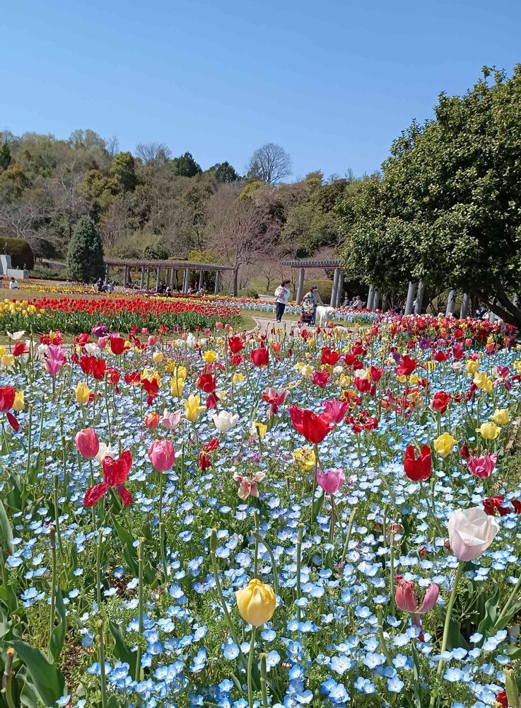 チューリップとネモフィラ❤️🧡💙💙コラボ👏👏すてき💓♥️❤️💙💙💙いいですね😍