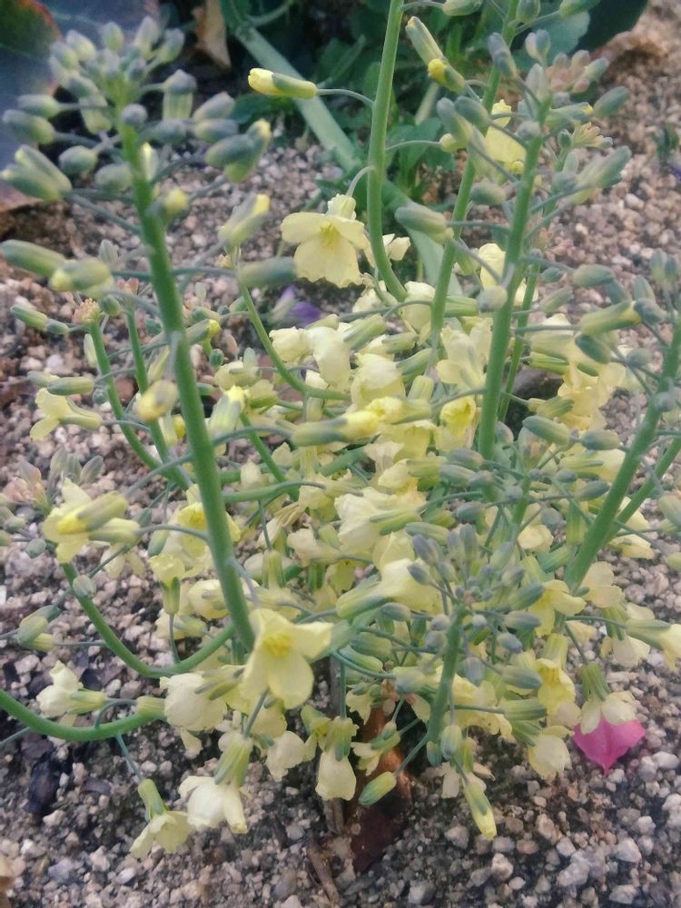 実家の小さい畑で倒れたブロッコリー😅、お花が咲いていました