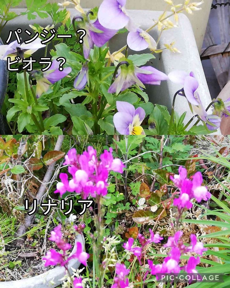 リナリア 何もしないのに 庭の あちこちに咲いている 4cmから 10cmを パンジー 2cmから 4cmを ビオラと 言うそうだけど