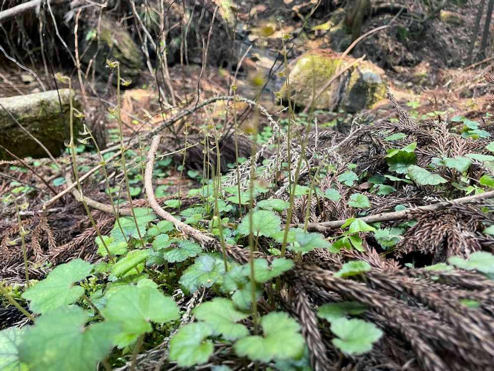 渓流沿いで。すーっと伸びた茎の先に変わったお花の形です。残念ながら、お花?そのものは焦点が合わず💦