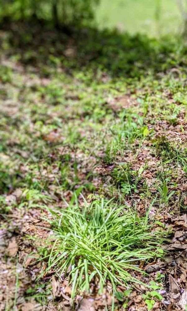 ピンと生えていた(3/22)蔓穂の春葉がバラバラ倒れて そろそろ黄ばんで来そうです 一旦消えて秋の始めに又コンニチハ… 美しいお花を咲かせてくれますね