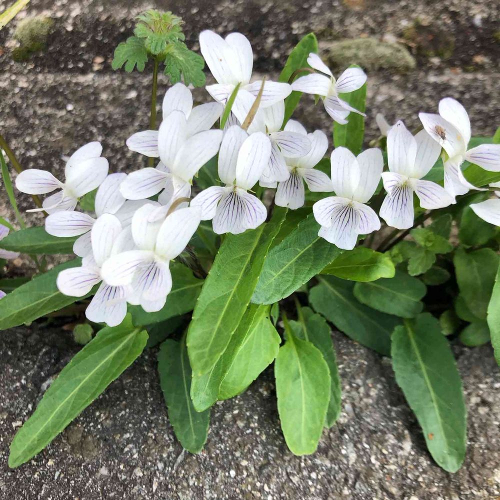 買い物へ行く道中の歩道脇に群生していたアリアケスミレ🤍🤍🤍