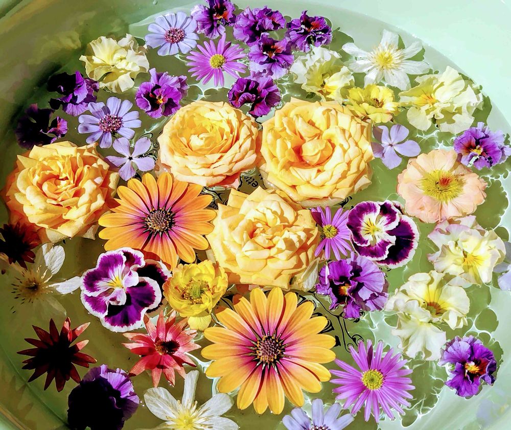 活力剤をあげてもどうにも復活しそうにないヌーベルヴァーグアクアレールの処分前のお花と今庭のお花をちょこちょこ使って花遊び😊