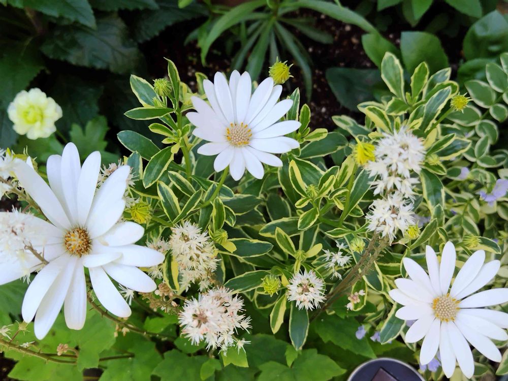 昨年寄植えに使っていた斑入りのオステオスペルマムザイールバリエガータが無事に地植えで夏冬越してお花を咲かせてくれました〜♪