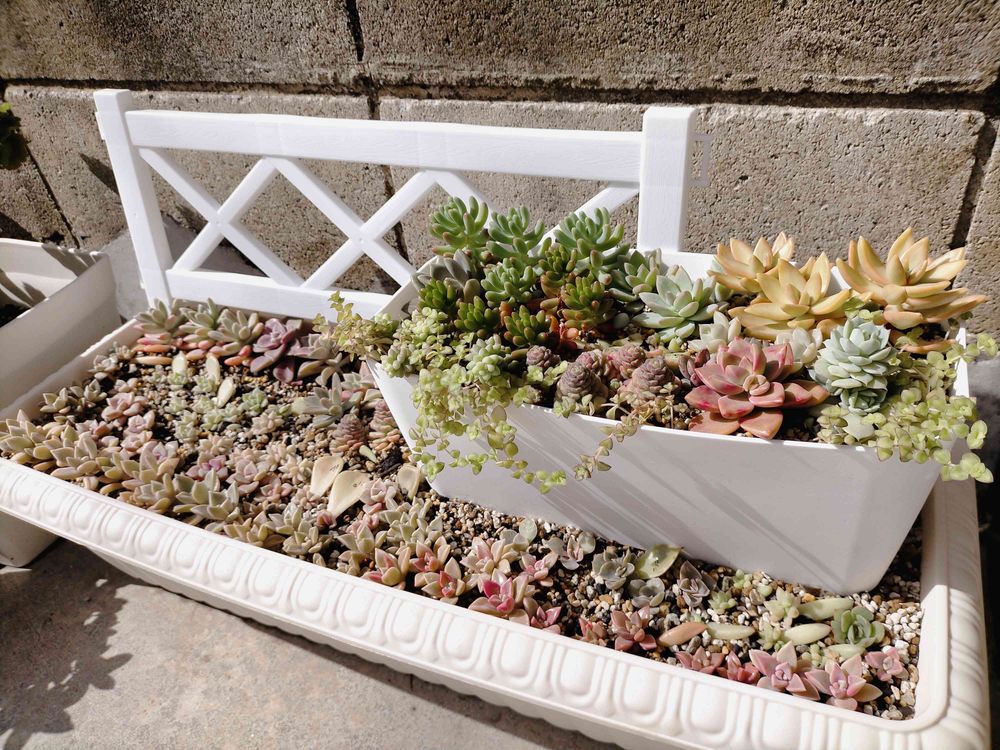 ここは雨ざらしだから、セダムとグラプトペタルムとグラプトベリアとかのよく増えるやつばかり