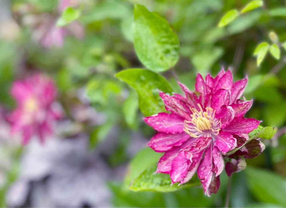 気がついたらクレマチス(品種:花炎)が咲いておりました。