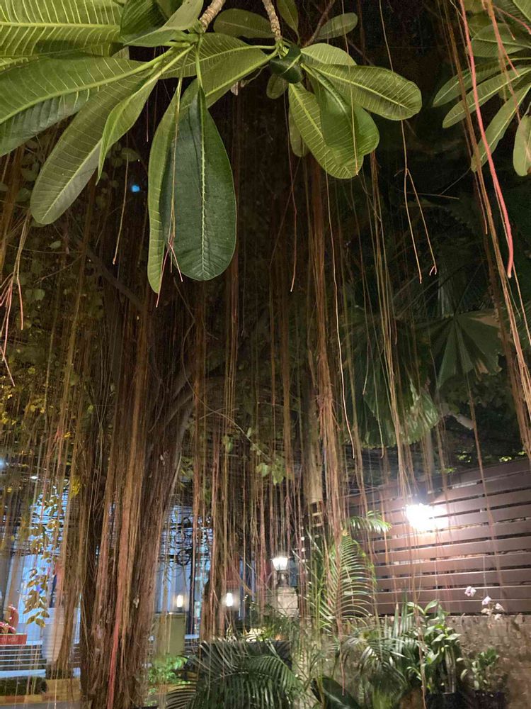 バニヤンツリー、ベンガルボダイジュでいいですか❓枝から縦に垂れ下がる気根もすごいですが横の電線もすごいです🤣