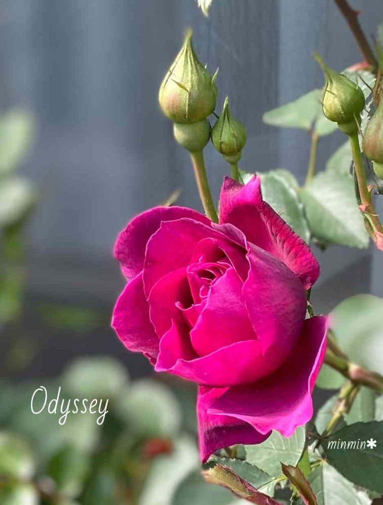 我が家の第一号は、オデュッセイアでした❤️❤️深い赤のバラですが、日差しを浴びるとちょっと青紫ががっています💓