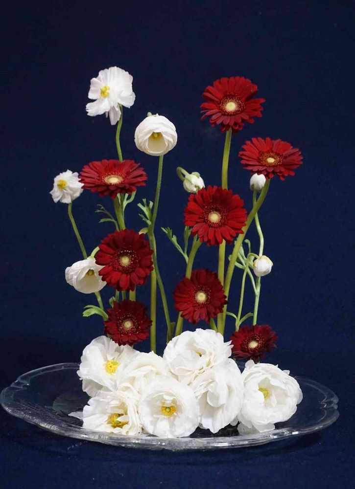 赤のガーベラと白のラナンキュラスで、作品を作ってみました。