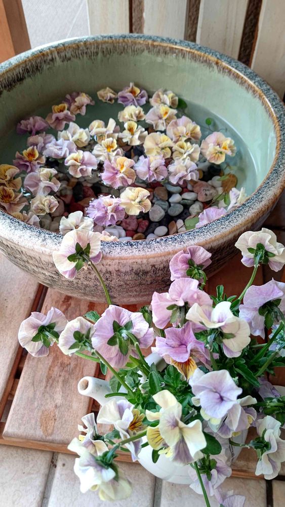 大きく切り戻し。何度も切り戻して、脇芽が育った大株。3分の1程にカット✂️。豪華な花手水と、テーブルフラワーに。