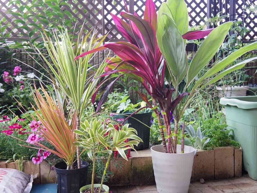 新入りの観葉植物さん。コルディリネとドラセナ。