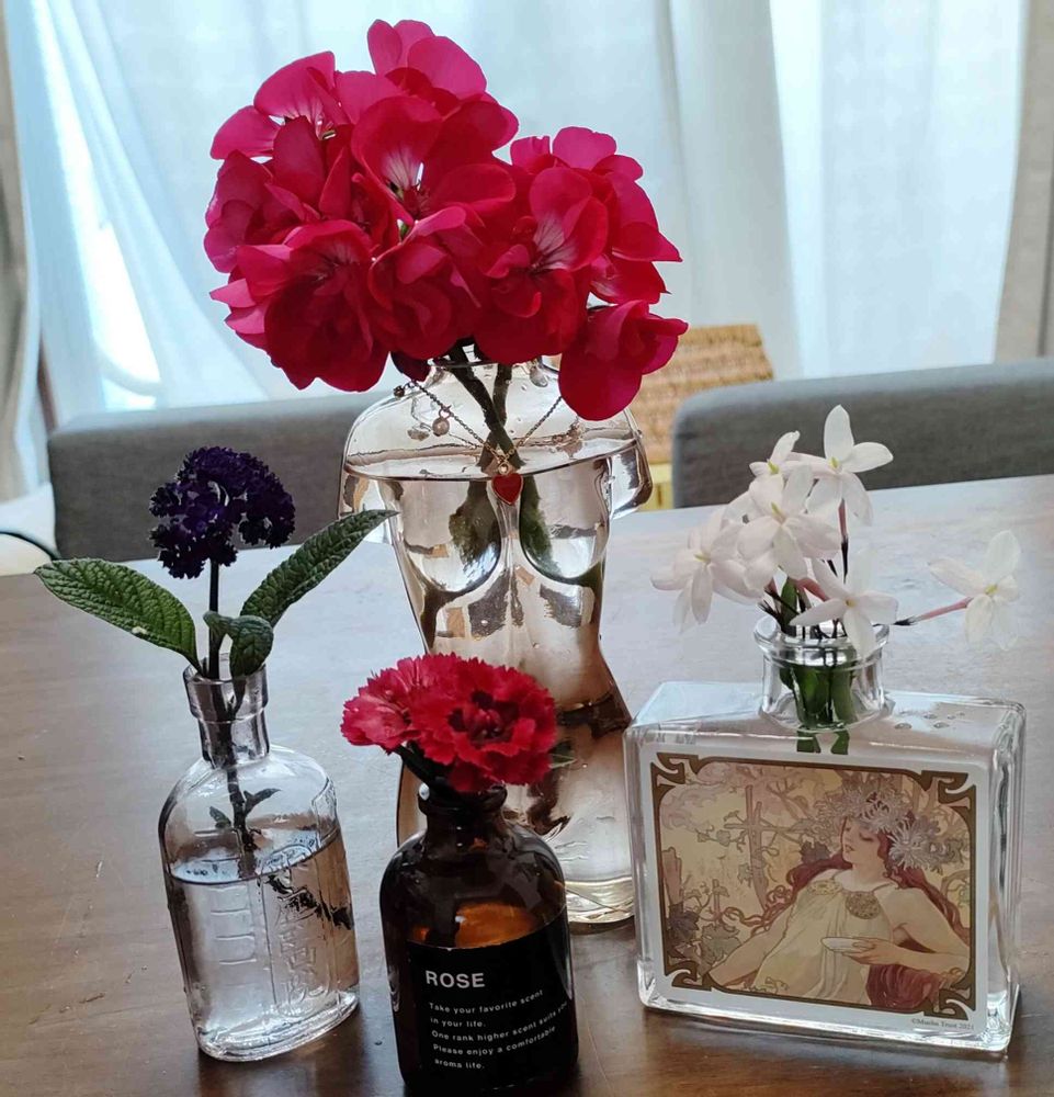 ゼラニウムもすくすく育ってきたので女体ちゃんに生けてみました✿存在感がすごい✨