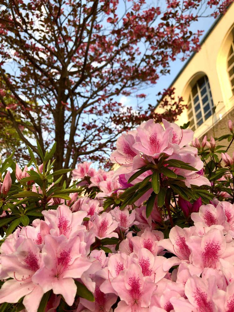 昨日の仕事の帰り道に夕陽を浴びてとっても綺麗だった、ツツジとハナミズキ🌸