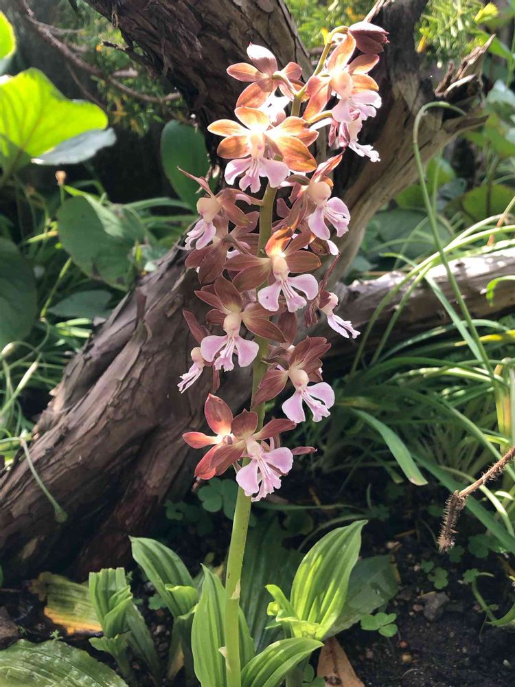 エビネ今年も一輪咲きました 葉が三ヶ所出て来たから来年は増えるといいなぁ〜💕