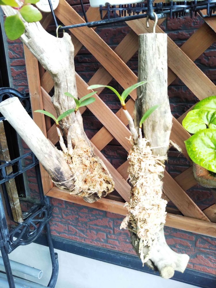 <地道投稿>流木キンギアナ3本(📷️)デンドロビウム3本先週つくりました。イワヤツデもらったご婦人要望です😆🎵🎵デンドロビウム二本届け、中学同級生のお店は各一本差し上げました。