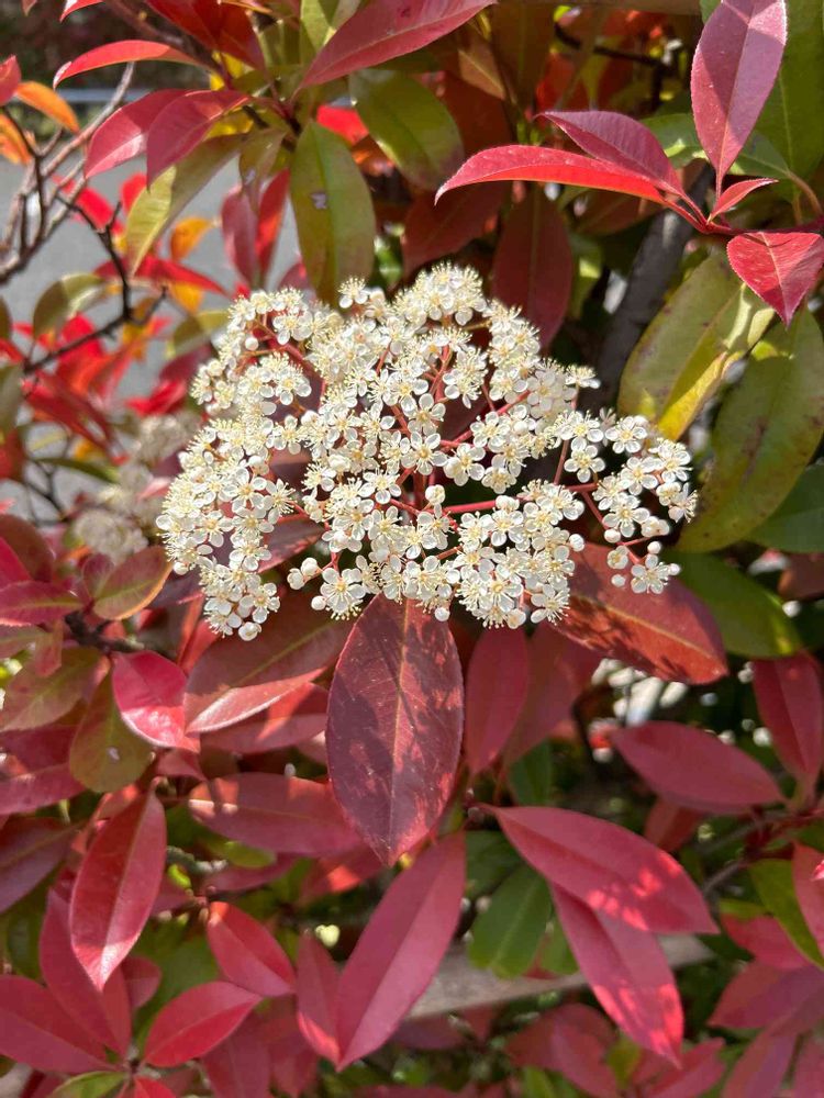 ベニカナメモチの花。細かい花💐