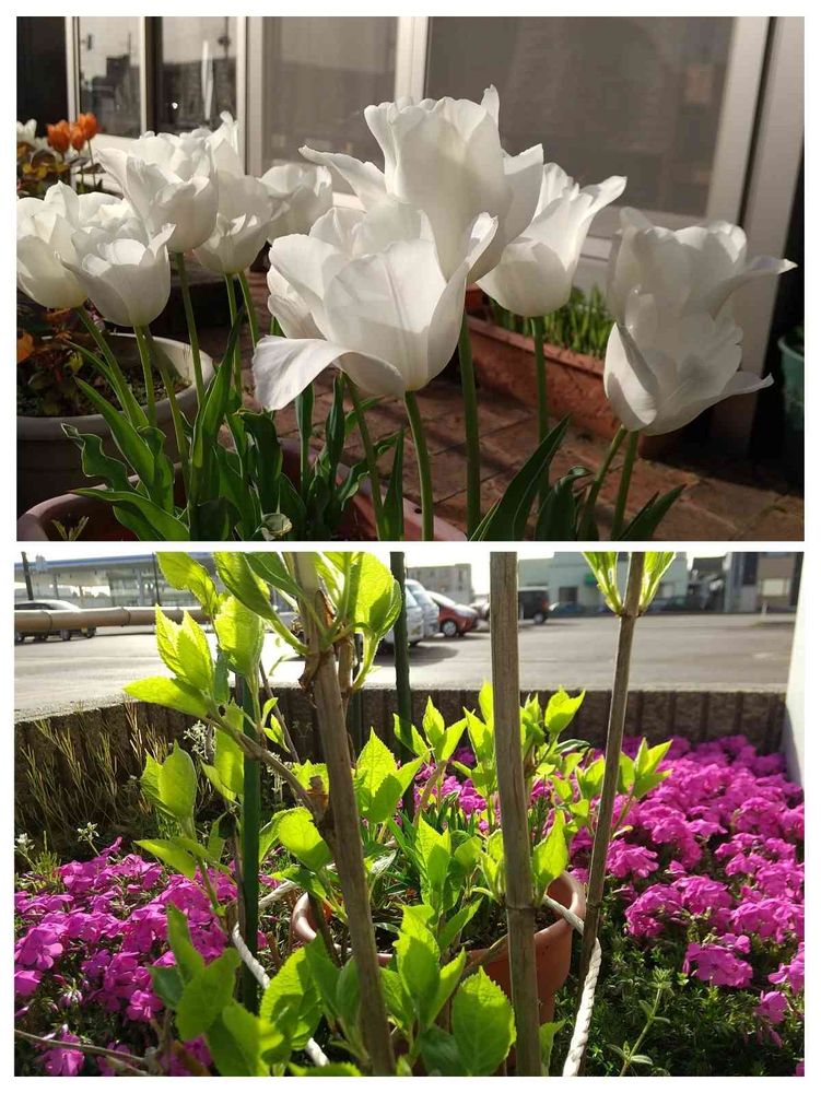 長〜く咲いているチューリップと花壇の隅っこに追いやられた芝桜🌸