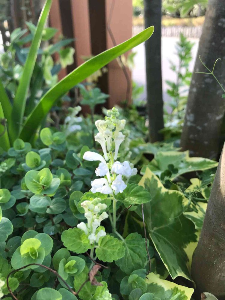 以前、実家から持ち帰った花がこぼれて根付いた白いタツナミソウが咲き始めました。