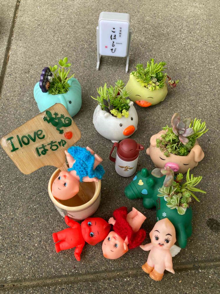 ビニール人形くり抜いて寄せ植えしてたの😆💧