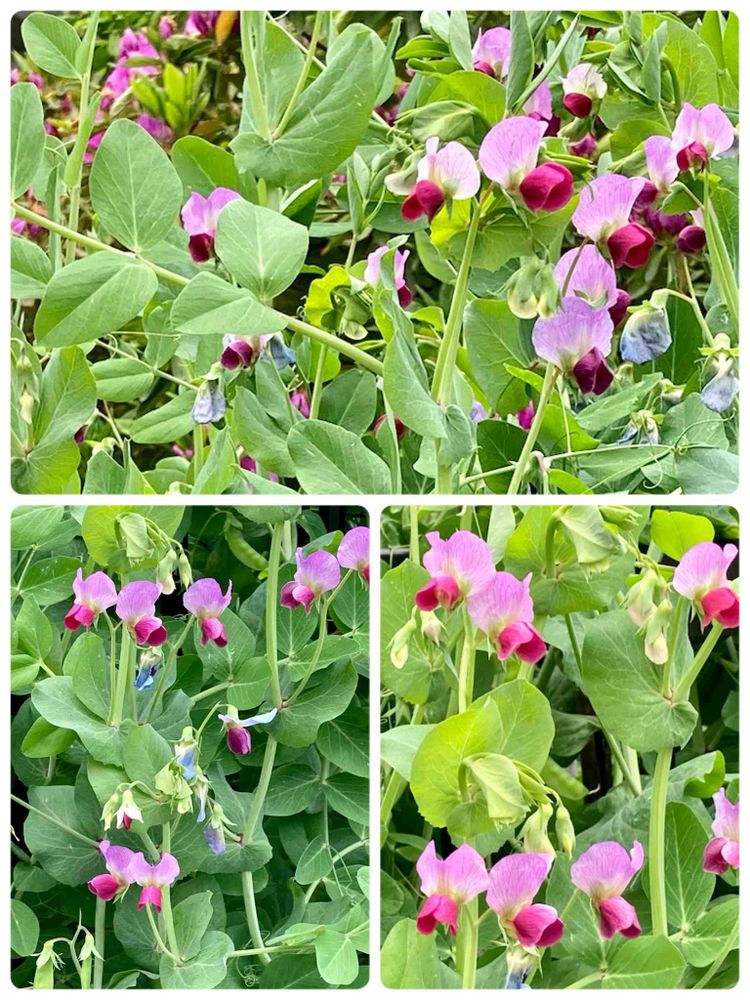近所の家庭菜園で可愛らしい「エンドウマメ」の花がたくさん咲いていた。