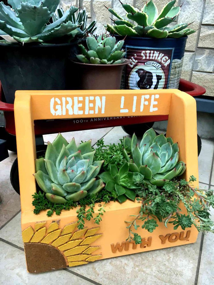 黄色のプランターには、みどりの多肉ちゃんがすごく映えおっきくても、素敵に見える🎵