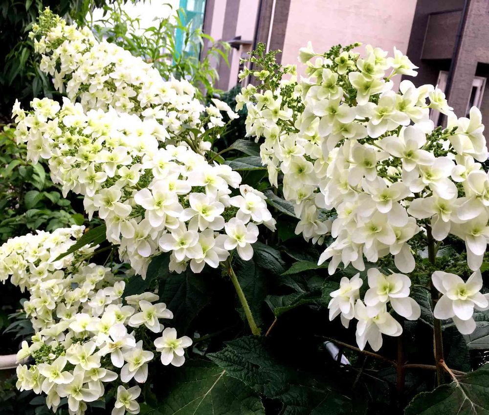 地植えのカシワバアジサイはほっとくと広がるのでかなり剪定したが見事に咲いてくれました🎶