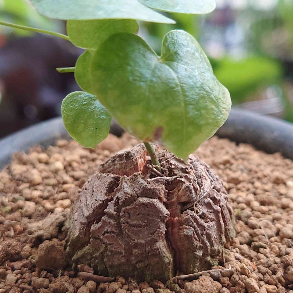植木屋GREENPLAZA21さんのテントに亀甲竜が2,200円〜高額まで数えられない位大量に並んでる🤩い~っぱいの中から店主の名越さんに色々と教えて貰って小さいこの子をお持ち帰り💕実生っ子もいるのに😅もの凄くパキパキしてて可愛いんだもん😍