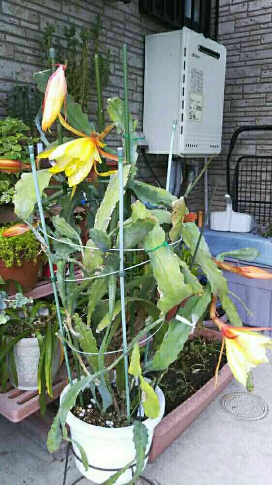 隣の、(僕のガーデニングの)御師匠さんちの、黄金色の、孔雀サボテン。神ごうしい色です。