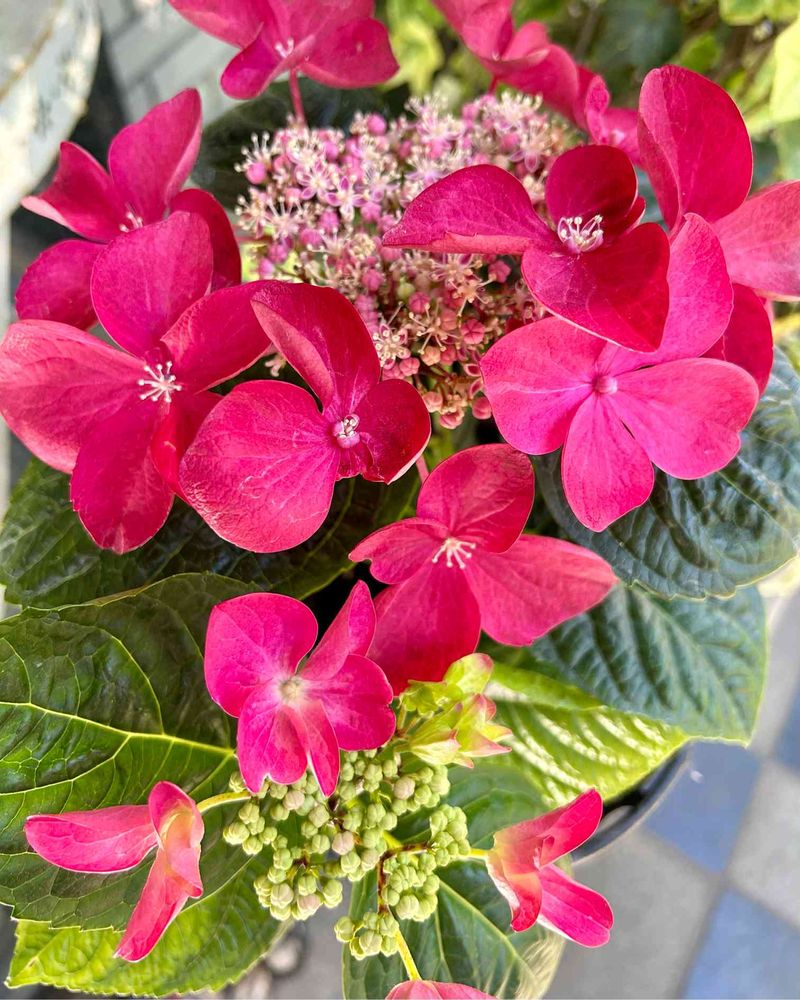 濃いピンク🎀のガクアジサイ。
