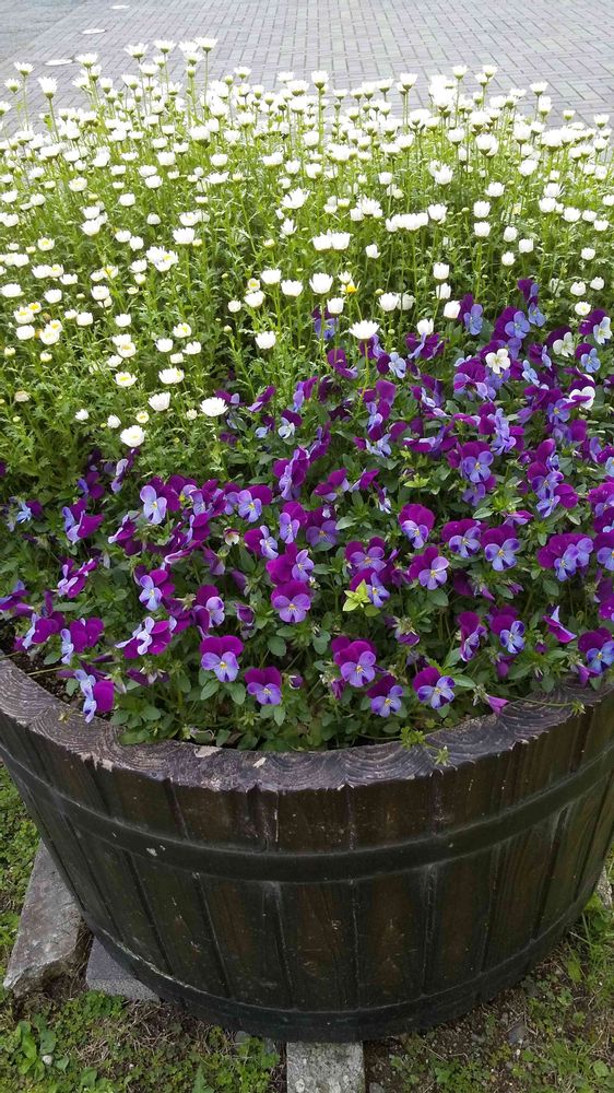 ノースポールとビオラの寄せ植え爽やかで素敵ですね💜🤍✨