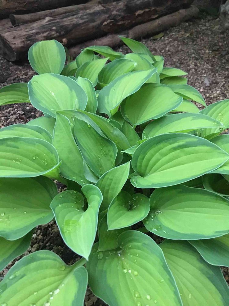 こちら、長い付き合いになるホスタ、セプテンバーサンです。セプテンバーサンは、オーガストムーンの芽変わり。8月の月が9月の太陽に生まれ変わるなんて、なかなかロマンチックです。