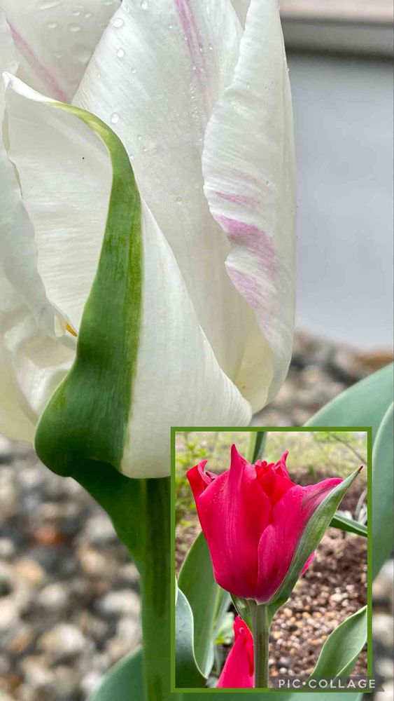 日当たり悪い場所のチューリップ🌷は葉っぱが異様におっきくて。