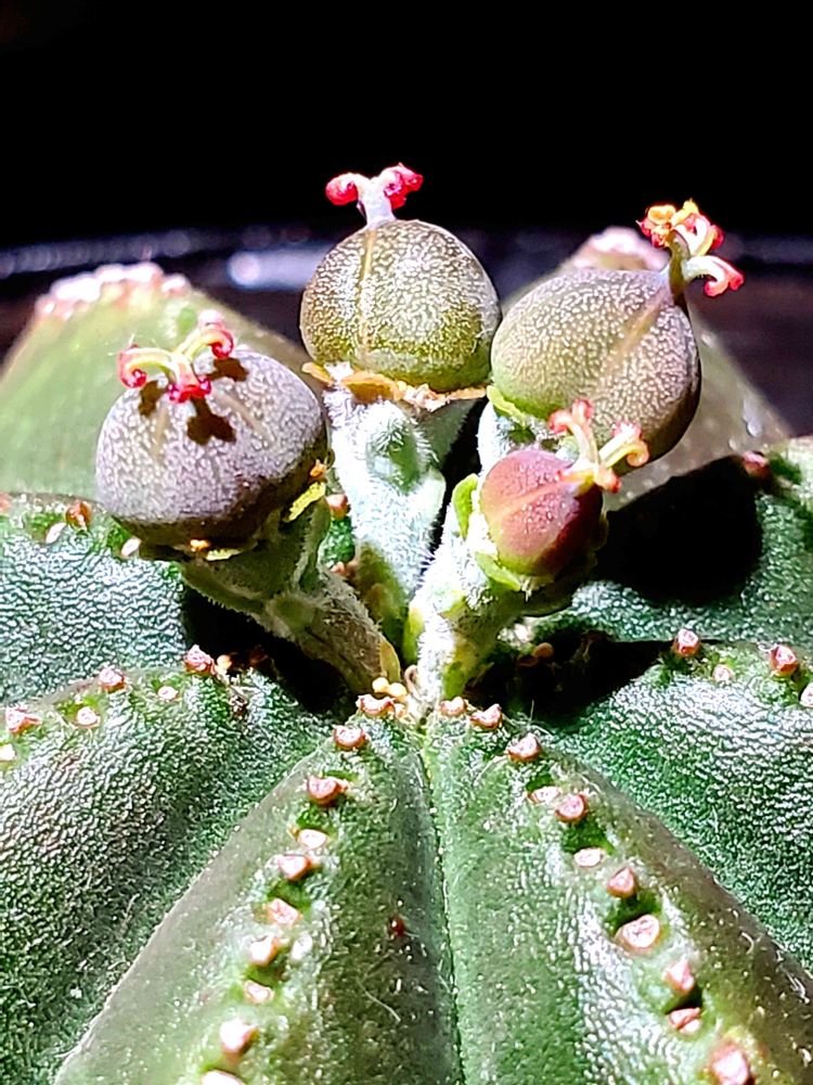 オベサの種子が発育良く膨らんできて、今にも弾けそうです❗