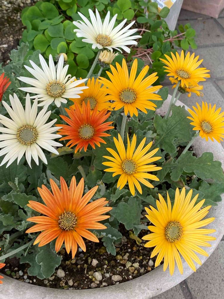 ☘️アークトチス☘️.....今日のアークトチスは3色揃って咲いているよ✨💕🧚♀️🧚🧚♀️💕✨多湿は苦手と聞いているのに、ついお水やりたくなるんだよ〜😂🫧🫧