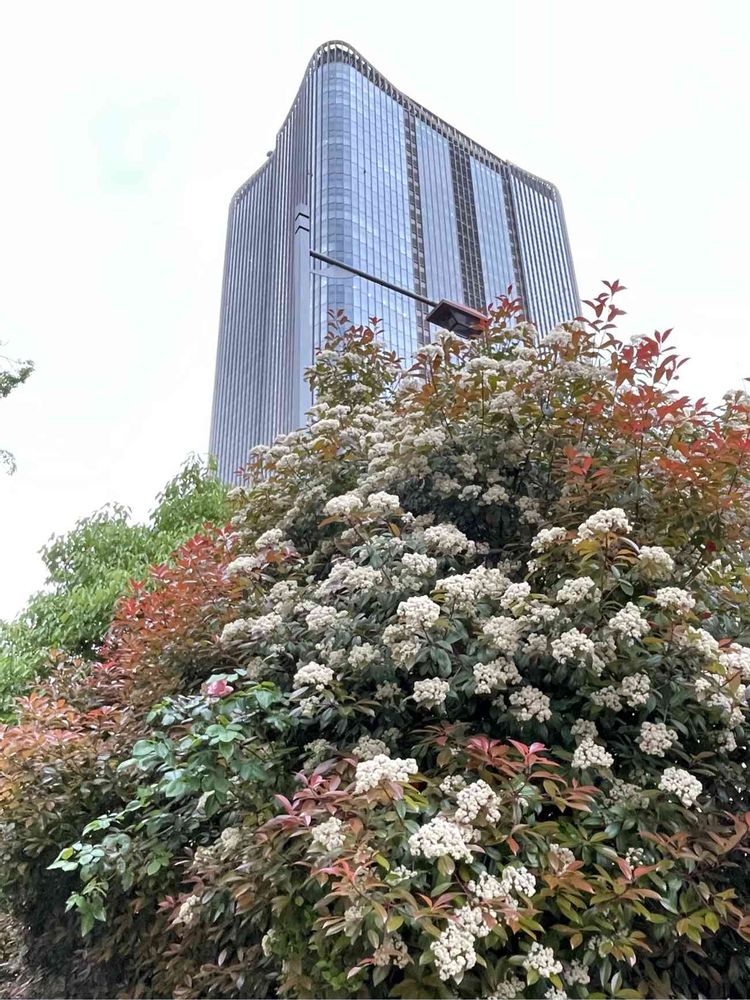 日比谷公園を出ると大きな🤍オオカナメモチでしょうか白い花がたくさん咲いてます