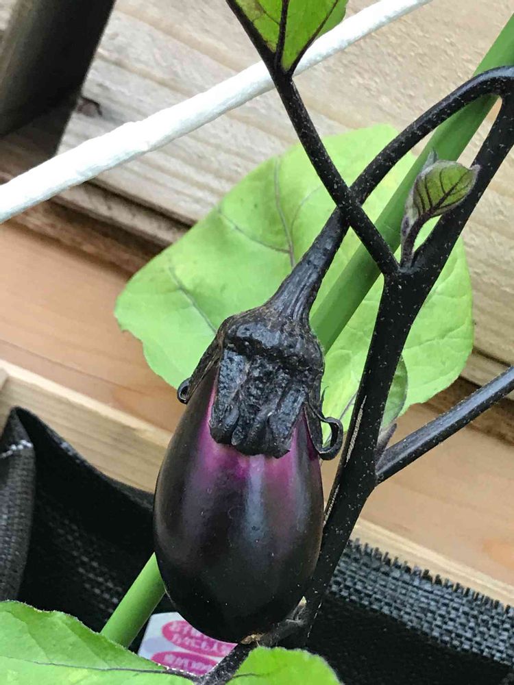 やわらか皮のナスの一番花の実が大きくなってきました✨