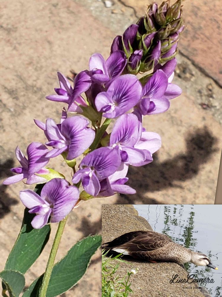 お出かけ先,紫色のお花,かるがもの投稿画像