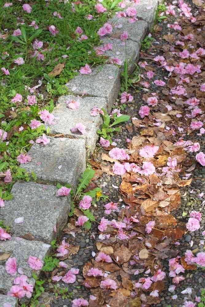 2023/04/16、『鶴見緑地』で撮影した散ったヤエザクラ。