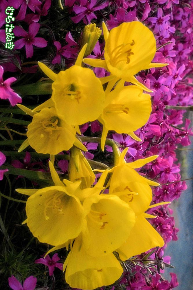 このペチコート水仙は『ナルキッソス・バルボコジウム』と言う、芝桜と 背が変わらないくらいの 極小水仙です・・・🙄