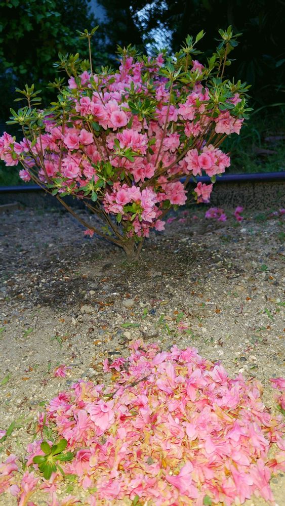 初めてのツツジの花がら摘み(^^)仕事から帰って暗くなるまで頑張りました。奥まった所や中の方は摘みにくい!剪定の大事さを再確認(*´ω`*)