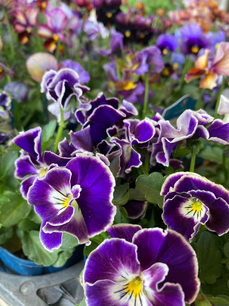 パンジーの名前の由来はフランス語のpensée(思考、思想)に由来し、少しうつむきがちに咲く花が物思いにふける人の顔に似ていることから名づけられました😊