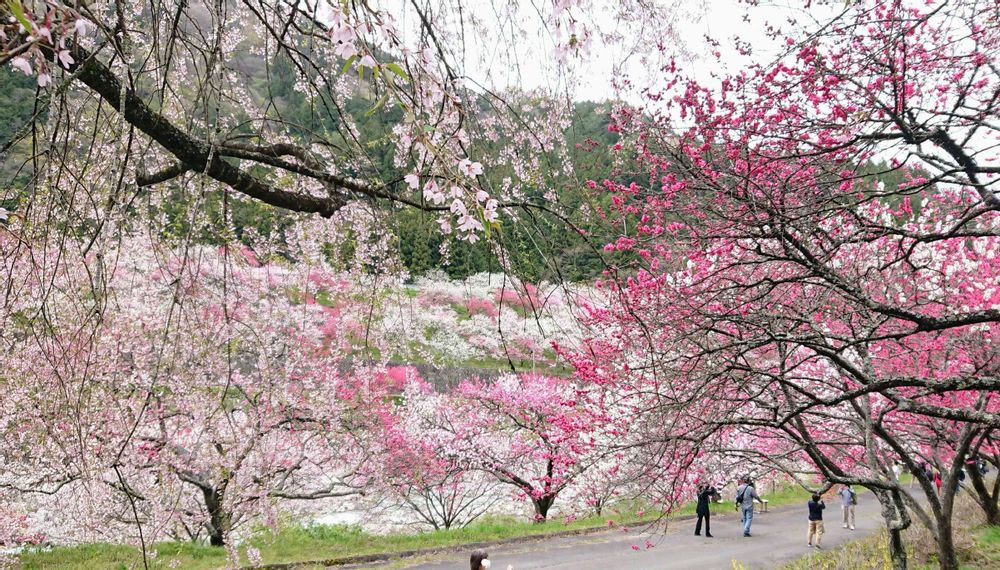 手前にある枝垂れ桜がかすむほど色とりどりに咲き誇っていました💕